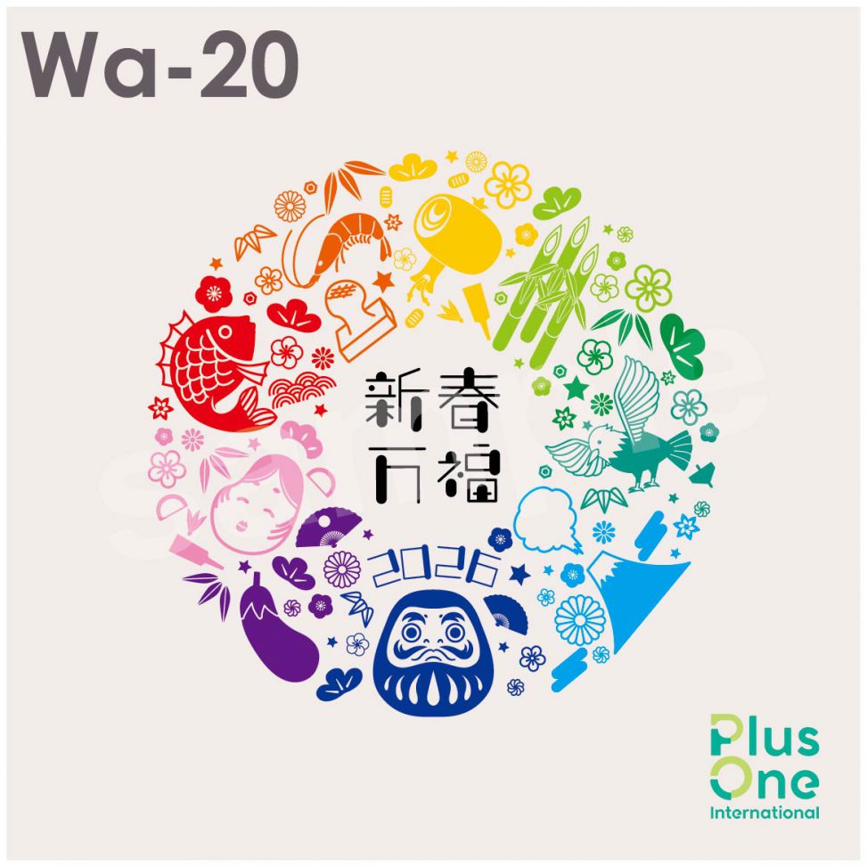 縁起のいいたくさんのアイテムとカラフルな色合いがかわいいデザイン素材